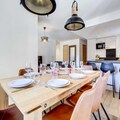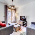 The spacious living room features an open, fully equipped kitchen, a dining area, and a lounge with access to the terrace, creating a perfect space for relaxation and socializing. Additional amenities include Wi-Fi, a washer/dryer, a dishwasher, a private garage, and a ski locker. Guests will enjoy the convenience of sheets and towels provided, beds made on arrival, and end-of-stay cleaning included.