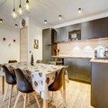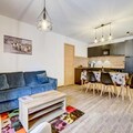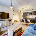 The apartment features a fully equipped kitchen with modern appliances, including a stove, oven, fridge, and dishwasher, allowing guests to prepare meals during their stay. A dining area complements the kitchen, while the living room offers ample space to relax after a day of exploring or skiing. Additional amenities include a ski locker with a boot dryer and a private garage with an electric car connection, ideal for those traveling by car. The property also provides convenient access to nearby slopes and a range of outdoor activities, ensuring a fulfilling stay for all guests.