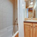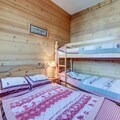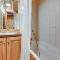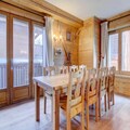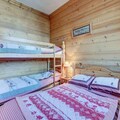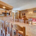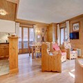 This spacious 2-bedroom apartment is located on the ground floor of a residence near the center, making it a convenient choice for families. Designed to accommodate 4 adults and 4 children, it offers a comfortable living space, including a living room with an open kitchen, sitting area, television, and a balcony. The first bedroom features a double bed and two single bunk beds, while the second bedroom also has a double bed and two single bunk beds. The apartment includes a shower room with a washing machine, a separate WC, and a bathroom. Additional amenities include outdoor parking, Wi-Fi, and a ski locker. During summer, guests can also use the cellar for bicycles. The apartment is a Summer Multipass member.