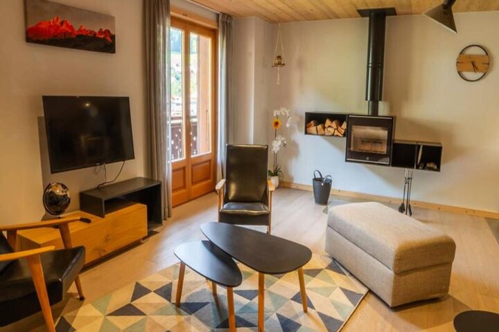 This charming two-bedroom apartment located in the heart of Morzine, offering a fantastic central location just 150m from the tourist office and 350m from the ski lifts and slopes. Situated on the first floor (no lift), it boasts stunning views of the village and surrounding mountains, making it an ideal choice for up to 6 guests. The apartment features an entrance with storage, a spacious living room with an open kitchen and dining area, a cozy lounge area with a sofa bed, TV, and wood stove, plus access to a balcony.