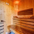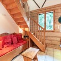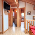 The apartment is equipped with a well-appointed kitchen, a sauna with a shower and bathtub, and a washing machine. It includes two attic bedrooms, a mountain corner with bunk beds, and a mezzanine with a TV/reading area. The layout offers comfort and privacy, making it perfect for families or groups.