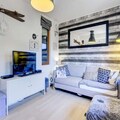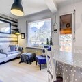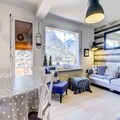 This charming, recently renovated apartment, offers stunning mountain views in a peaceful setting. Situated next to a free shuttle stop, it provides easy access to the village center and ski lifts within minutes, making it ideal for both winter and summer stays. The apartment features a spacious living room with a large balcony, perfect for enjoying the scenic surroundings. The fully equipped kitchen and cozy dining area provide everything needed for a comfortable stay.