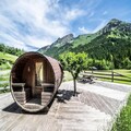 The chalet's kitchen is fully equipped with modern appliances, including an oven, stove, and all necessary utensils to prepare meals with ease. Guests can enjoy the open-plan design that seamlessly connects the kitchen to the living and dining areas. The property’s heating system ensures a comfortable stay year-round, and the included garden, complete with a sauna and barbecue, offers a perfect space for relaxation after a day of exploring the mountains.
