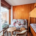 Property along with a functional and recently renovated design offers a spacious 30m² studio, accommodating up to 4 people. The studio features a living area with two 80x190 bunk beds and a 160cm sofa bed, making it suitable for small families or groups. Guests can enjoy a panoramic view from the balcony, a perfect spot to unwind after a day on the slopes. Additional amenities include a ski locker for storage, a shower room with a washing machine, and a fully equipped kitchen with essential appliances such as a fridge, oven, and microwave. The rental also provides a sheet and towel kit, with end-of-stay cleaning included. Wi-Fi is available for an extra fee, with rental options through the agency.