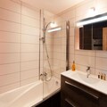 The fully equipped open-plan kitchen features all essential modern appliances for effortless cooking and entertaining, including a washing machine and dryer in the adjacent storeroom. Guests can unwind in the sauna with its own shower or relax in the outdoor SPA located nearby. Each room is thoughtfully furnished, with televisions in most bedrooms and cozy spaces ideal for relaxation. Ski lockers with boot dryers provide added convenience, and guests can expect efficient central heating throughout their stay. This accommodation offers an excellent mix of relaxation, accessibility, and comfort for both winter and summer adventures.