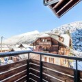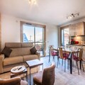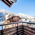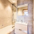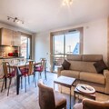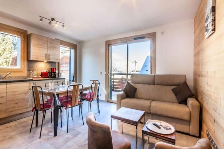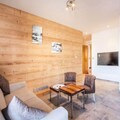 This stunning apartment, located in one of the best spots in Morzine, offers direct access to the Pleney slopes and is just steps away from restaurants, bars, and shops. The high-end construction blends contemporary design with traditional mountain charm, creating a welcoming and stylish space. Situated on the second floor with elevator access, the apartment features a spacious entrance, a cozy living room with a sofa bed, and an open kitchen that leads to a balcony. There are two well-appointed bedrooms, each with either two single beds or a double bed and a television. A separate sleeping area with two bunk beds provides additional space. The apartment also includes a bathroom with a toilet, a shower room, and another separate toilet.