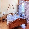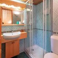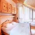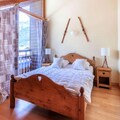 The first floor includes a bedroom with a double bed, balcony, and ensuite bathroom with a WC. Upstairs, there are two additional bedrooms, one with a double bed and a single bed, plus a balcony, and another with two single beds. The third bedroom offers a double bed and a single bed, with an adjoining bathroom and WC. The apartment also boasts a shower room with WC and is equipped with a closed garage, ski locker, cellar, WiFi, and an elevator for added comfort.