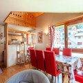 This high-end 4-bedroom + mezzanine apartment, located in the heart of Morzine, offers the perfect blend of luxury and convenience. Situated in a recent and quiet residence, it is just a short walk from ski lifts, shops, bars, and restaurants, making it ideal for both winter and summer stays. The apartment features a spacious living room with an open kitchen, equipped with modern appliances like a dishwasher, microwave, oven, and fridge with freezer. The living area opens onto a balcony, perfect for enjoying the fresh alpine air.