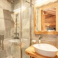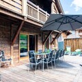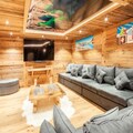 This magnificent new high-end chalet offers spacious and luxurious accommodation, ideal for up to 10 people. The property includes five bedrooms, with a mix of double beds and single bunk beds, each room equipped with a TV for added convenience. There are also two additional sleeping spaces, one in a mezzanine sleeping area and the other in a double bedroom with an en-suite. The chalet provides an array of amenities, such as a large terrace with access to a jacuzzi, a ski room with a boot dryer, and a relaxation lounge with a sauna. Free Wi-Fi, cable, satellite, and Netflix are available for entertainment, and the living areas are heated by a pellet stove. The property is pet-friendly, offering an outdoor space where pets can roam freely, though smoking is not permitted inside.