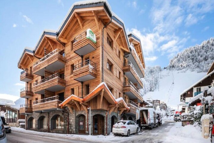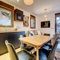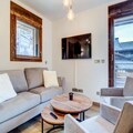 This superb two-bedroom apartment, located on the 1st floor of a new residence with an elevator, offers a comfortable stay for 4 to 6 people. Ideally situated in the heart of the village and at the foot of the Morzine-Les Gets slopes, the apartment features a spacious entrance, a living room with an open kitchen, and a dining area. The lounge area is equipped with a sofa bed (140x200) and opens onto a balcony with a view of the Pleney slopes. The first bedroom has a double bed (160x200) with access to a balcony, plus a shower room and WC. The second bedroom is equipped with two single bunk beds (80x200) and a single bed (90x200), along with a bathroom and WC.