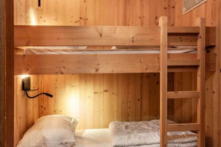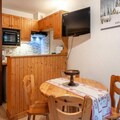 Property along with a cozy and practical layout, this renovated studio-cabin offers a comfortable stay for up to 4 guests. Located on the 1st floor of a residence, the apartment includes a mountain corner with two bunk beds, a living room with a sofa bed, and a kitchenette for preparing simple meals. The living area also has a television and provides access to a balcony, offering a pleasant space to relax. The apartment is well-equipped with essential amenities, including storage space in the entrance, a bathroom with a bathtub, and a separate WC. For added convenience, a ski locker and a small cellar for storing up to 2 bikes are available. The residence also provides parking spaces, though they are not individually allocated. Pets are not allowed, and bicycles cannot be stored inside the apartment.
