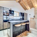 The fully equipped open kitchen is designed for professional use, offering all the essential tools for cooking and dining during your stay. Additional amenities include a modern smart television and a beautifully designed living area with high ceilings and large windows to take in the magnificent mountain views. Guests can unwind on the spacious terrace featuring garden furniture or relax in the luxurious ambiance of this contemporary alpine retreat. The property provides end-of-stay cleaning, ensuring a stress-free experience, and guests will benefit from complimentary services such as bedding and towels on arrival. Furthermore, the property is a Summer Multipass Partner, offering guests access to numerous seasonal activities during their stay.