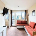 This charming 2-room apartment accommodates up to 4 people with one cozy bedroom featuring a double bed and a living room with a sofa bed for two. Located in a prime position, it is perfect for both relaxation and adventure. The property is pet-friendly, allowing your furry friends to enjoy the getaway with you. Additionally, it offers essential amenities including bed linen, a maintenance kit, and a flat-screen TV, ensuring a comfortable stay for all guests.