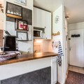 This cozy apartment, located on the 6th floor of a ski-in/ski-out residence, offers the perfect retreat for small families or groups of up to four guests. The living room is furnished with a sofa bed that sleeps two, while the mezzanine features two beds (not suitable for two adults). The property is pet-friendly, allowing you to bring along your furry companions. Bed linen is included, and guests can opt for additional towel services or a daily linen change for added comfort.