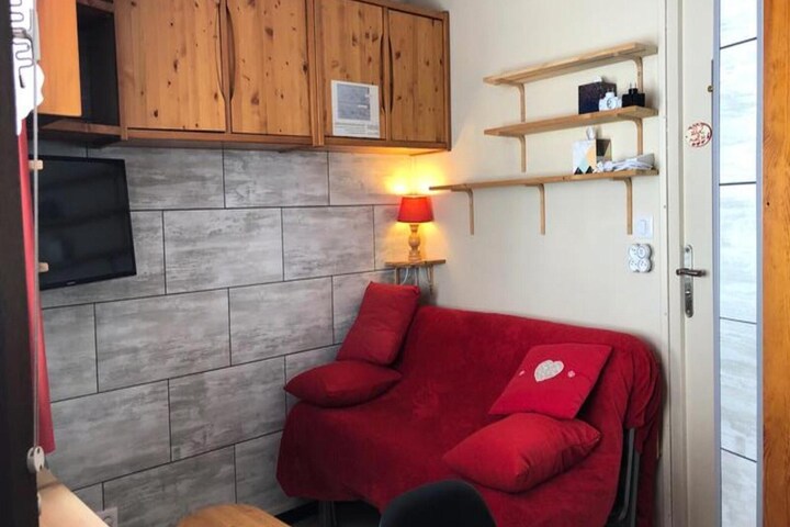 Nestled in the heart of the Avoriaz resort, this cozy studio is ideal for couples or small families seeking a mountain escape. The living room features a convertible sofa bed for two, and a separate cabin area offers bunk beds, making it perfect for up to four guests. The space includes a dining table with chairs and benches, ensuring comfortable meals together. Pet-friendly accommodations are available, and WiFi keeps you connected. Guests also benefit from a ski locker, allowing convenient ski-in/ski-out access.