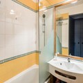 The apartment includes a fully equipped kitchen that opens to the living area, providing a convenient space for cooking meals. The bathroom features a bathtub with a shower and a toilet. For additional convenience, end-of-stay cleaning is mandatory, and daily cleaning services are available at an extra cost. Covered parking spaces can be reserved nearby, and a tourist tax applies on arrival. The apartment also offers optional Wi-Fi access for an additional fee, ensuring you stay connected during your stay.