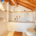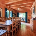 The chalet boasts a fully equipped open kitchen, perfect for preparing meals after a day of adventure. A large living and dining area features a cozy fireplace, and the balcony and terrace are ideal for outdoor relaxation, with garden furniture and a barbecue. On-site amenities include a laundry room with a washing machine and dryer, as well as a private kitchenette in one of the bedrooms. The property also includes ample storage space, a ski room, and separate WC facilities.