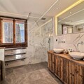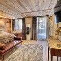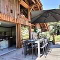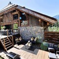 Inside, the chalet includes a large garage, ski room, laundry facilities, and a wellness area with a sauna, hammam, and a counter-current swimming pool. The spacious kitchen and dining area open onto a terrace, perfect for enjoying the beautiful surroundings. The chalet also provides modern amenities, including free Wi-Fi, a flat-screen TV, and a concierge service for additional comfort.