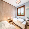 This ground-floor apartment is perfect for up to 6 guests, featuring two comfortable bedrooms and a spacious living room with a sofa bed. The main bedroom offers a double bed (180x190), while the second bedroom is furnished with two single beds (90x190). Enjoy the fresh air with easy access to a private terrace and garden. The apartment is equipped with Wi-Fi and heating, providing a cozy retreat after a day of activities. Pets are not allowed, and sheets and towels are provided in convenient kits.