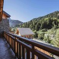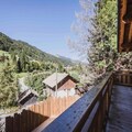 Inside, the chalet boasts four luxurious en-suite bedrooms and a cozy mezzanine with two single beds, comfortably accommodating up to ten guests. The spacious living area, complete with a fireplace, invites you to unwind after a day of exploration, while the fully equipped open-plan kitchen and dining area make it easy to share meals and create lasting memories. Modern amenities such as Wi-Fi, a utility room with a washing machine and dryer, and ski and bicycle storage ensure a seamless and comfortable stay. Step outside to enjoy the private garden and terrace, where you can soak in the fresh alpine air and stunning views.