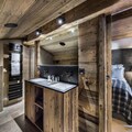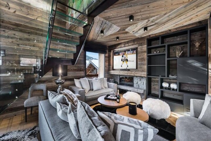 The chalet is spread over 3 levels and offers 6 superb suites including 1 sumptuous Master, a large designer living room with kitchen, bar, dining area and TV lounge with fireplace, a fitness area, an outdoor jacuzzi... The chalet also offers state-of-the-art technological equipment: sound system in each room and on the terraces, control with tablets, etc.