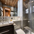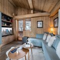 The chalet is ideally located near the Rochebrune gondola, offering easy access to the slopes and the center of Megève. The property features a garden and terrace for guests to enjoy the outdoors in a peaceful setting. For convenience, the chalet includes a garage for one car, a shoe dryer, and a laundry room. On the second level, the living room boasts a fireplace with a closed hearth, surrounded by comfortable armchairs and poufs.