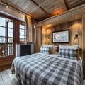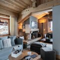 Property along with a charming and luxurious design provides a spacious and welcoming chalet ideal for family holidays in Megève. The Reine des Prés chalet offers a bright living room with various spaces, including a cozy TV lounge, a relaxing cocooning area, and a beautiful dining room close to the kitchen. The chalet features four double bedrooms and a mezzanine, accommodating up to 8 adults and 2 children.