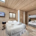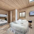 Nestled halfway between La Princesse and the center of Megève, this spacious 180m² apartment offers the perfect balance of tranquility and convenience. Set in a peaceful location, you can enjoy the surrounding nature with a private garden and a large terrace, all while being just a five-minute drive from the ski lifts and Megève’s charming village center. Designed for comfort, the apartment features three double bedrooms, each with its own en-suite shower room. A family room offers flexible sleeping arrangements, with two single beds (that can be joined together) and two high beds, ideal for children.