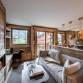 This beautifully renovated 80m² duplex apartment, completed in 2023, is located in the heart of Megève, offering a luxurious and comfortable stay for up to 6 people. The apartment features modern, warm decor and a convenient layout spread across two levels. On the entry level, guests will find an open kitchen, a cozy living room with a TV and electric fireplace, as well as an independent toilet.
