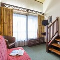 The apartment features a fully equipped kitchen for preparing meals, as well as two bathrooms and separate WC for added convenience. Additional amenities include a wellness area with saunas and a massage parlor, an indoor heated swimming pool with panoramic views, and a fitness room for those looking to stay active. Covered parking is available for guests, and a TV is included for entertainment.
