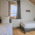 Living room(double sofa bed, TV(flatscreen), seating area), open kitchen(hob(ceramic), electric kettle, toaster, espresso machine, oven, microwave, dishwasher, fridge, dishes and cutlery), bedroom(double bed(160 x 200 cm)), Cabin(bunk bed(90 x 190 cm)), Cabin(bunk bed(90 x 190 cm)), bathroom(shower), bathroom(shower), toilet(toilet), toilet, playroom, fitness room, Internet access, cot, sauna, balcony or terrace, parking, high chair, hairdryer