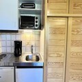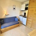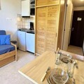 The apartment is thoughtfully designed for comfort and practicality. It features an entrance hall, a cozy living room with a single sofa bed and a pull-out bed (70 x 190 cm), and a west-facing balcony where you can soak in the breathtaking mountain views. The kitchenette is equipped for preparing meals, while the separate bathroom and toilet ensure convenience. Modern touches like a television enhance your stay, and the property includes a ski locker for your winter gear and access to shared outdoor parking. Additional services, such as bed linen, towels, Wi-Fi, and baby kits, may be available upon request for added ease.