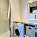Step inside to discover a thoughtfully designed space featuring an entrance hall with built-in wardrobes, a cozy living and dining area with a double sofa bed, and a west-facing balcony perfect for soaking in the afternoon sun. The independent kitchen is fully equipped for preparing hearty meals, while the bedroom, complete with two single beds and balcony access, ensures restful nights. Modern conveniences like a shower room with a washing machine and a separate WC add to the comfort of your stay.