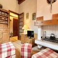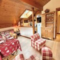 High above the charming streets of Megève, this cozy mountain apartment offers a serene retreat with breathtaking views and easy access to the region’s most sought-after attractions. Imagine waking up to the crisp alpine air, stepping onto your south-facing balcony, and planning a day filled with skiing, sports, or simply soaking in the beauty of the French Alps. Whether you’re here for winter adventures or summer escapes, this residence places you at the heart of it all. \n\nLocated on the second floor of a quiet residence, the apartment comfortably accommodates up to six guests. The thoughtful layout includes an entrance hall with two single bunk beds, a sleeping alcove with two additional bunk beds, and a private bedroom with two single beds and ample storage. The fully equipped kitchen opens onto a warm and inviting living/dining area, complete with a decorative fireplace that adds a touch of rustic charm. After a day on the slopes or exploring the village, unwind in this cozy space or enjoy the stunning views from the balcony. \n\nJust 450 meters from the Jaillet gondola lift and ski school, and a short 850-meter stroll to the village center, the location is ideal for both convenience and exploration. The nearby Palais des Sports, only six minutes away, offers a variety of activities for all ages, making this apartment perfect for families and groups. With a private garage and ski locker, your gear is always secure and easily accessible. \n\nWhether you’re drawn by Megève’s world-class skiing, vibrant village life, or tranquil summer hikes, this apartment provides the perfect base for unforgettable alpine memories. Let the charm of the French Alps inspire your next adventure.