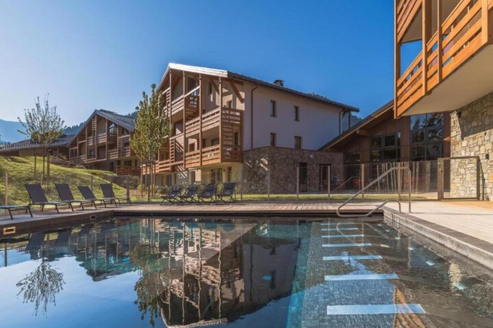 As a guest, you gain access to the residence's exceptional shared wellness facilities. These include an impressive indoor pool extending to a heated outdoor leisure pool. The expansive spa area is perfect for post-ski relaxation, featuring an XXL jacuzzi, a purifying sauna, hammam, salt grotto, and invigorating sensory showers. Treatment and massage services are also available upon prior arrangement. This apartment is your luxurious and convenient starting point for an unforgettable escape to the slopes and the serene atmosphere of the Alps.