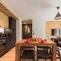 Designed in a chic mountain style, each apartment provides a warm and inviting retreat. The accommodation includes a cozy living area with a flat-screen TV and sofa bed, a fully equipped modern kitchen with all essentials, and comfortable bedrooms including one with a private en-suite bathroom. Most apartments also feature a private balcony or terrace—ideal for enjoying the fresh Alpine air and stunning views. A parking space is available for every apartment, ensuring maximum convenience during your stay.
