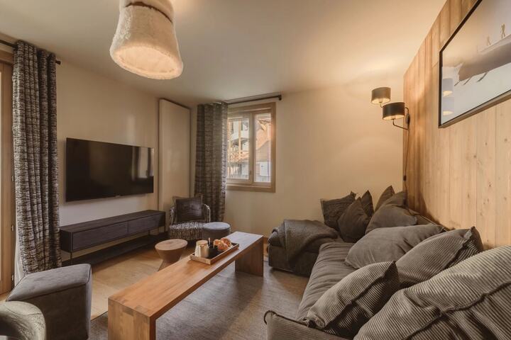 This expansive 58 m² apartment offers a premium retreat for up to seven guests, blending modern functionality with exclusive luxury features. The heart of the home is a bright, open-plan living area featuring a comfortable seating arrangement, a flat-screen TV, and a double sofa bed for additional guests. Culinary enthusiasts will appreciate the fully equipped open kitchen, which includes high-end amenities such as a ceramic hob, dishwasher, and an espresso machine, ensuring a seamless self-catering experience for large families or groups.