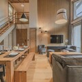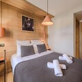 For relaxation and leisure, the property boasts exceptional shared facilities, including both indoor and outdoor swimming pools, an expansive wellness area with a sauna, hammam, salt grotto, and an XXL jacuzzi that can accommodate up to 20 guests. Sensory showers, a bubble bath, and optional massage treatments add to the experience. Ideal for families or groups of up to ten people, this serene mountain retreat combines sophistication, comfort, and easy access to the beauty and adventure of Megève.