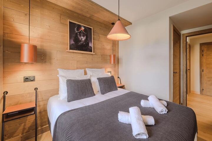 Nestled in the heart of the French Alps, this elegant residence offers a luxurious stay just minutes from the center of Megève. Surrounded by breathtaking views of Mont Blanc, it provides an ideal blend of comfort, style, and alpine charm. Each apartment and room is tastefully designed in a chic mountain style, featuring a fully equipped kitchen, cozy living area, and, in most cases, a private balcony or terrace to enjoy the crisp mountain air. Guests will find everything they need for a memorable winter or summer holiday in an atmosphere of refinement and tranquility.