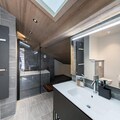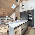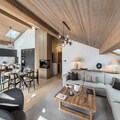 The apartment is equipped with a well-appointed kitchen, a sauna with a shower and bathtub, and a washing machine. It includes two attic bedrooms, a mountain corner with bunk beds, and a mezzanine with a TV/reading area. The layout offers comfort and privacy, making it perfect for families or groups.