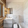 This spacious 100-square-meter apartment, located just minutes from the center of Megève, comfortably accommodates up to 4 adults and 2 children. It features a bright living room with access to a large balcony, perfect for enjoying the sun. The apartment offers two double bedrooms, each with a double bed, wardrobe, and one with an en-suite bathroom. A children's bedroom with a bunk bed, a second bathroom with a shower, and separate toilets provide added convenience. The apartment includes 2 garage spaces, a ski locker, and is non-smoking with no pets allowed.