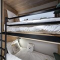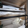The apartment features a spacious living room with a TV lounge, an open-plan dining area, and a fully equipped kitchen. It includes one double bedroom with an en-suite shower room, another double bedroom, and a cabin bedroom with bunk beds. The bathroom has a bathtub, and there is a separate toilet. Additional amenities include a garage, parking space, ski room, and linens with beds made on arrival. For an extra charge, spa towels and concierge services are available. The residence is pet-free and non-smoking, ensuring a peaceful environment.