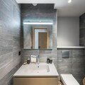 The apartment comes with a fully equipped kitchen, including an oven, microwave, refrigerator, and ceramic hob, providing guests with the convenience to prepare their meals. Independent toilets are available, and the property also boasts a selection of luxury services such as a sauna, hammam, and fitness area, available in the residence's shared relaxation zone. These wellness facilities are open year-round, offering guests a chance to unwind after a day of outdoor activities.