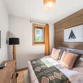 The property, along with its spacious and modern layout, features three bedrooms and three bathrooms, comfortably accommodating up to 4 adults and 3 children. Guests can enjoy a bright living area with a sofa, a dining space, and a south-facing terrace furnished with deckchairs, perfect for relaxing. While pets are not permitted, additional services such as spa towel rental, concierge packages, and bathrobes are available for an extra cost. The residence provides regular cleaning twice a week, with end-of-stay cleaning included, and guests will find essential linens like sheets and towels provided. Additionally, a ski locker is available for storage, and a covered parking spot can be reserved for guest use.
