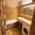 The apartment also features a fully equipped kitchen with 4 electric hotplates, an oven, refrigerator, microwave, and dishwasher, providing all the essentials for meal preparation. The bathroom includes a bathtub, sink, and washing machine, while there is also a separate toilet. Additional amenities include shared parking, a garage, and optional services such as Wi-Fi box rental and end-of-stay cleaning, ensuring a comfortable and well-equipped stay.