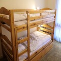 This spacious 81 m² apartment, located on the second floor, is ideal for family or group stays, accommodating up to 6 guests. The apartment includes two bedrooms, one with twin beds and the other with bunk beds, each offering a balcony for fresh air and scenic views. The living room features a television, and the apartment is non-smoking and not pet-friendly. A washing machine and dishwasher are provided for added convenience, and bed linens and towels are available for rent upon request.