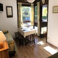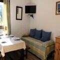 Located near the heart of Saint-Gervais, this charming ground-floor studio is perfect for a family or group of up to four. The studio offers a cozy living area with a double sofa bed (160x200), a TV, and a dining space, while a separate sleeping nook features bunk beds (90x190), ideal for kids or friends. Its South-East-facing balcony invites you to relax and enjoy the fresh mountain air. Pets are welcome, making it a great choice for pet owners looking to explore the area.