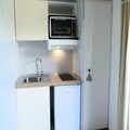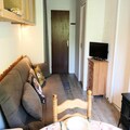 The studio features a well-equipped kitchenette with a refrigerator, oven, ceramic hob, coffee maker, and kettle, allowing for easy meal preparation. The bathroom includes a bathtub and WC, offering a comfortable space to unwind after a day of adventure. The apartment also provides ski lockers in winter, ensuring a convenient and enjoyable stay."