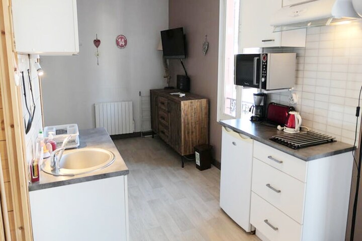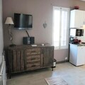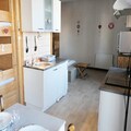 This charming studio apartment in Saint-Gervais is perfect for up to 4 guests. It includes a living room with a sofa bed (160x200), television, and a dining area. The sleeping area features bunk beds (90x190), ideal for children. Please note that pets are not allowed. The studio is located on the 1st floor and has a northern exposure, offering stunning views of the Fiz mountain range. A balcony provides a lovely space to relax after a day of activities.