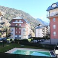 At the gateway to the majestic Evasion Mont-Blanc ski area, this charming apartment in Saint-Gervais offers an idyllic alpine escape for families and friends alike. Positioned just 50 meters from the Saint-Gervais cable car, you’ll find yourself moments away from thrilling ski slopes and breathtaking mountain views. The residence also boasts a heated outdoor swimming pool, available during the summer months, perfect for relaxing after a day of exploring the picturesque surroundings. With its southeast and southwest exposure, the apartment’s two balconies invite you to soak in the tranquil ambiance of the French Alps at any time of day. \n\nInside, the 42 m² apartment comfortably accommodates up to six guests. The living room features a cozy sofa bed, television, and dining area, creating a welcoming space to unwind. The kitchen is fully equipped with modern appliances, including a dishwasher, ceramic hob, refrigerator, and microwave, ensuring you have everything needed for home-cooked meals. Two bedrooms with twin beds provide restful retreats, while the bathroom, shower room, and separate toilet offer convenience and privacy. Additional amenities such as a garage, ski locker, and optional services like linen rental and childcare equipment make your stay even more comfortable. \n\nBeyond the residence, Saint-Gervais enchants with its charming village center, located just 800 meters away. Stroll to nearby bakeries, tobacconists, and sporting goods shops, or venture further to discover the region’s natural wonders. In summer, hiking trails and panoramic vistas await, while winter transforms the area into a snowy paradise. Whether you’re here for skiing, relaxation, or adventure, this apartment is your perfect base for creating unforgettable alpine memories.